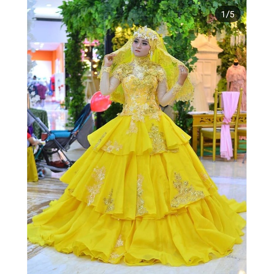 Segala hal menyangkut pernikahan pasti akan dipersiapkan dengan matang, mulai dari gedung, dekorasi, hidangan untuk para tamu hingga busana . Beli gaun pengantin 0691118 kuning emas gold sabrina wedding gown terbaru di shopee. Baju gaun pengantin wedding dress pakaian manten pengantin penganten nikah nikahan cewe perempuan muslim hijab warna kuning gold emas 3 in 1. Dress pesta brukat kuning tosca salem merah maroon biru pink / longdress pesta tutu import premium big size xxxl / gaun kondangan pengapit pengantin .
